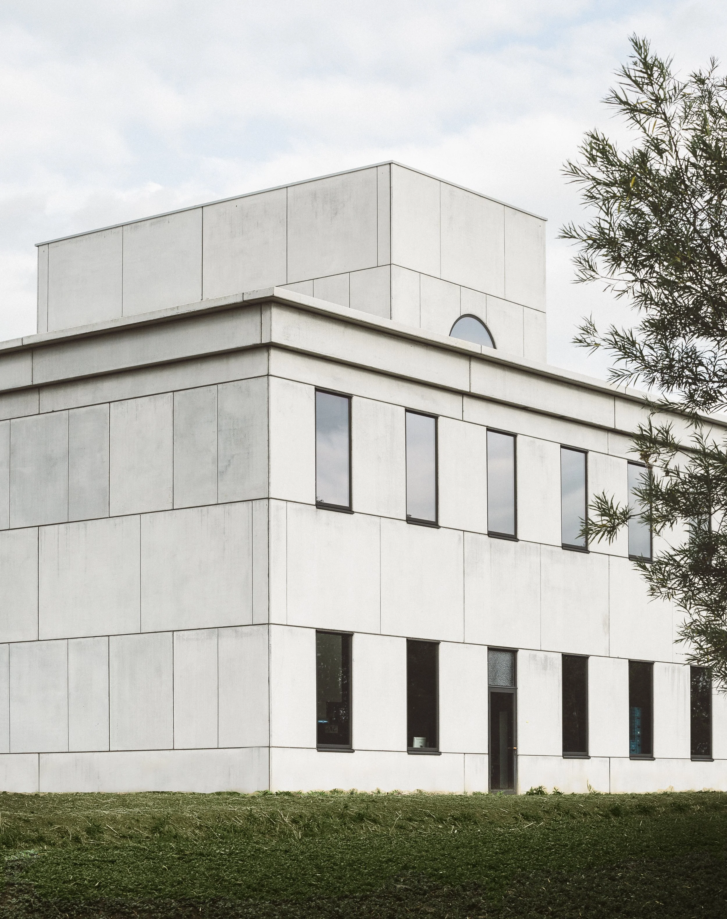De architectuurtaal is verrassend eenvoudig, sacraal en reminiscerend: een gedachte aan een verschijnsel uit het verleden. Geen vierkante meter teveel, geen voeg te weinig. De gevels vertalen letterlijk de binnenkant van het gebouw. De voorzijde herbergt enkel stockage die UV gevoelig is, de achterkant is helemaal opengewerkt naar de achterliggende natuur ten voordele van de werkruimte waar geproduceerd wordt. Geen typische gesloten voedselveilige doos, maar een open plek met als centrale hart de helixtrap die wederzijdse ontmoetingen induceert.