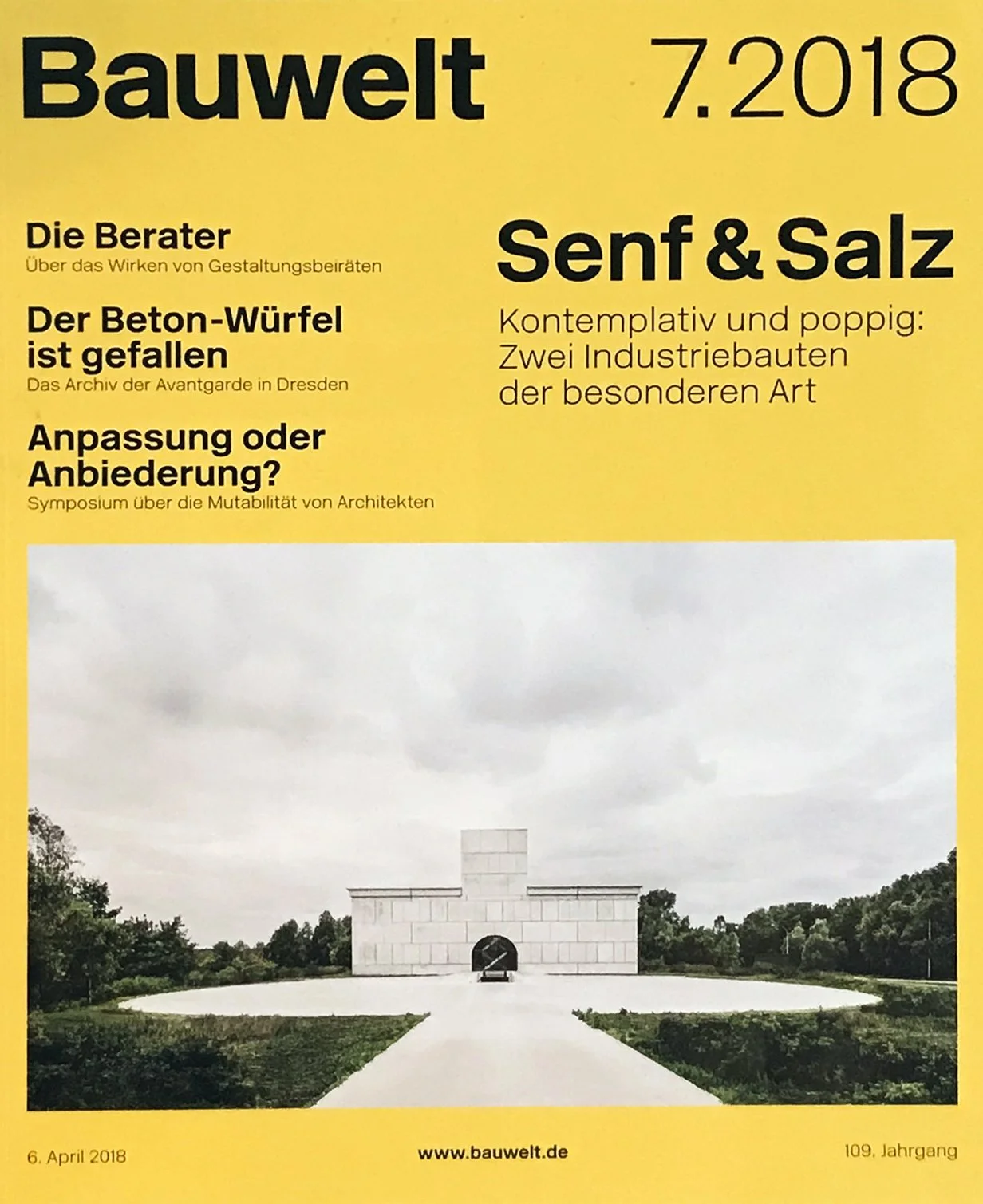 Cover van Bauwelt: Dat een toonaangevend Duits architectuurtijdschrift als Bauwelt kiest voor een Belgische mosterdfabriek op de cover, is een zeldzaam statement. Het bevestigde de iconische status van het beeld: de gevel die zowel robuust als mysterieus is.
