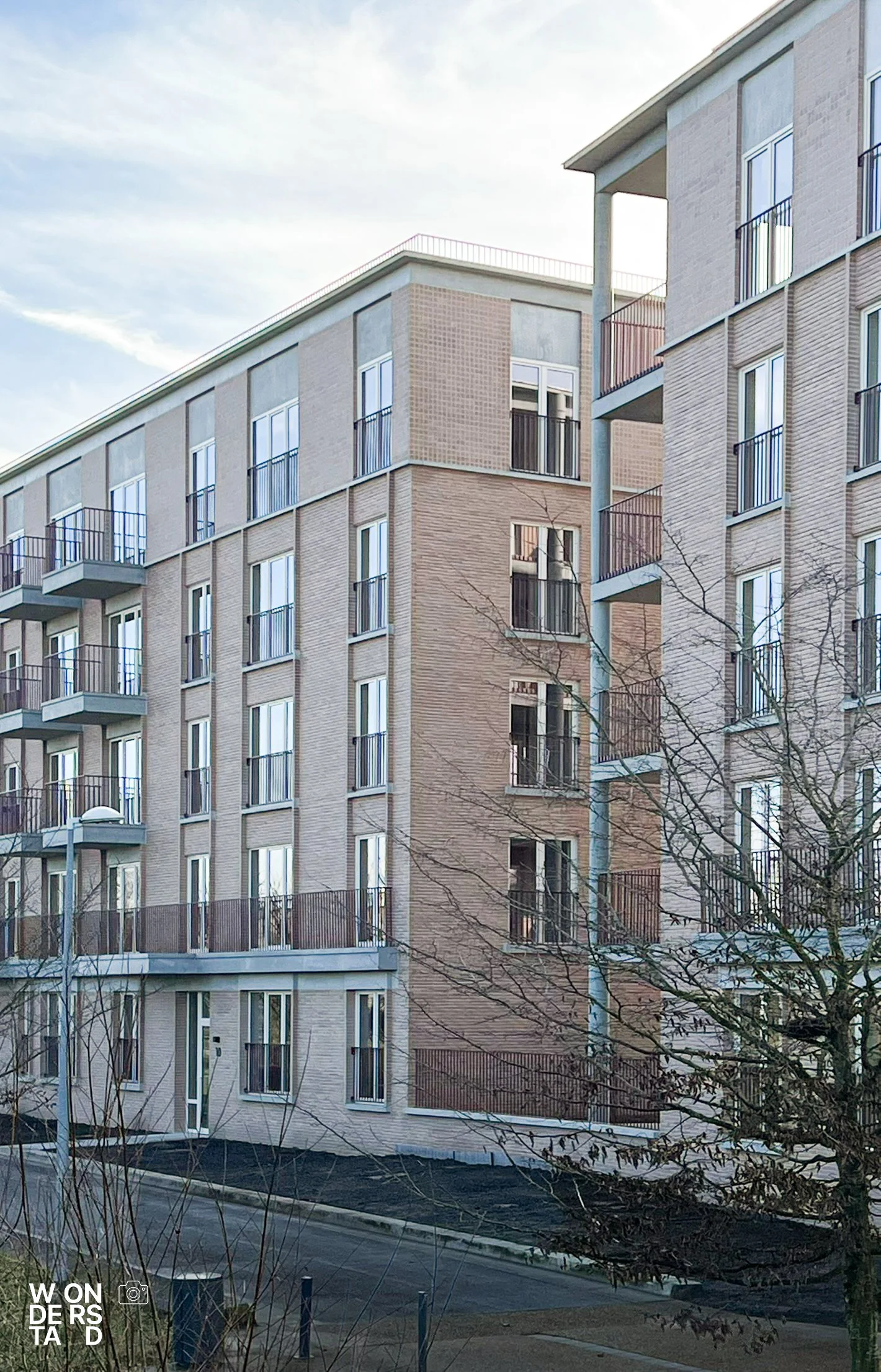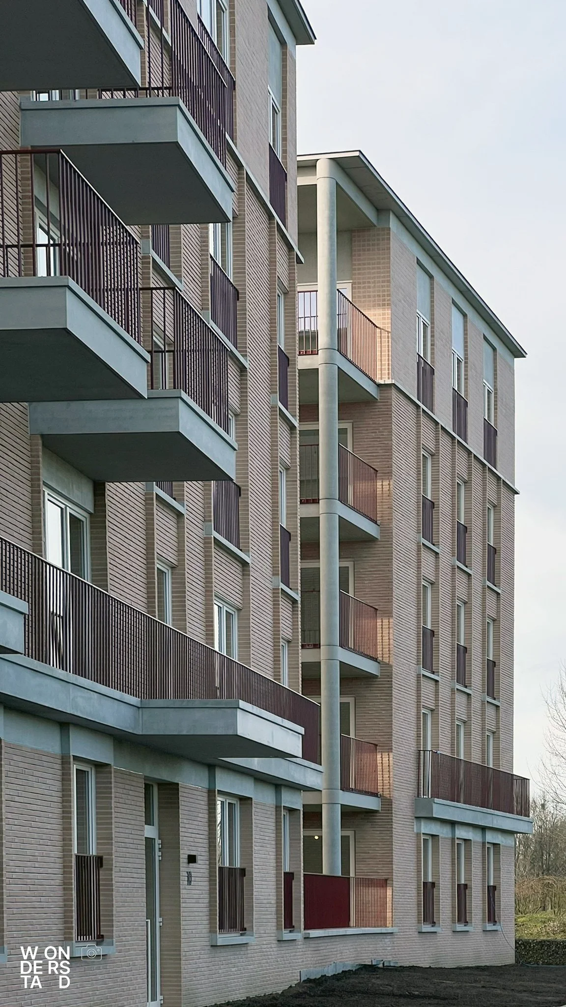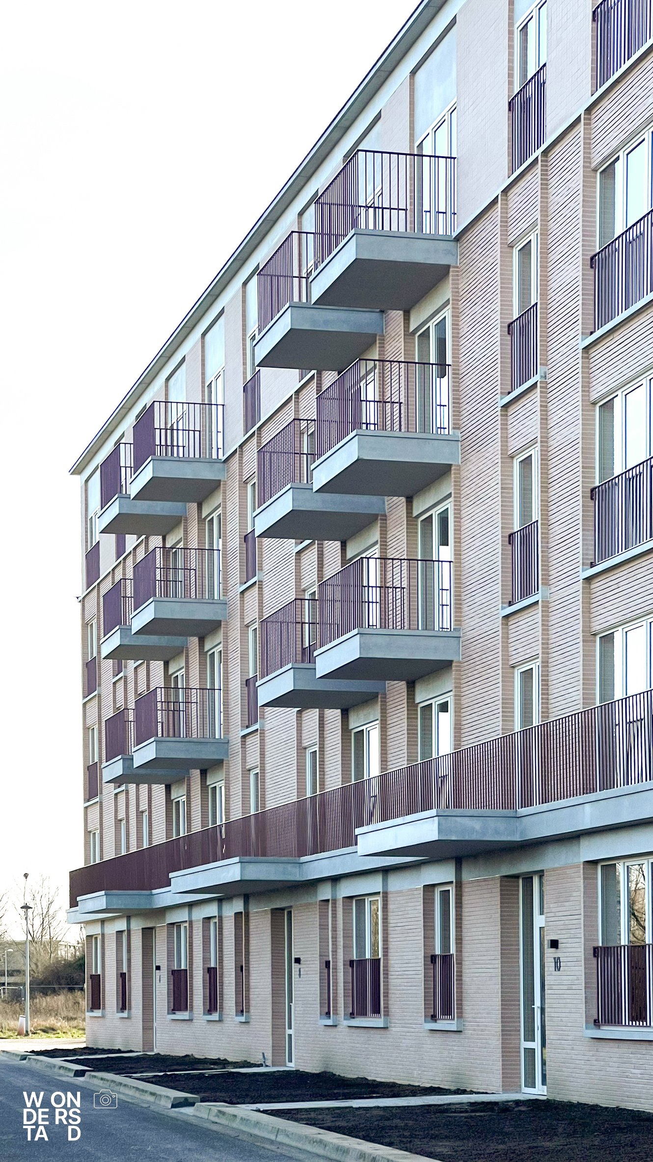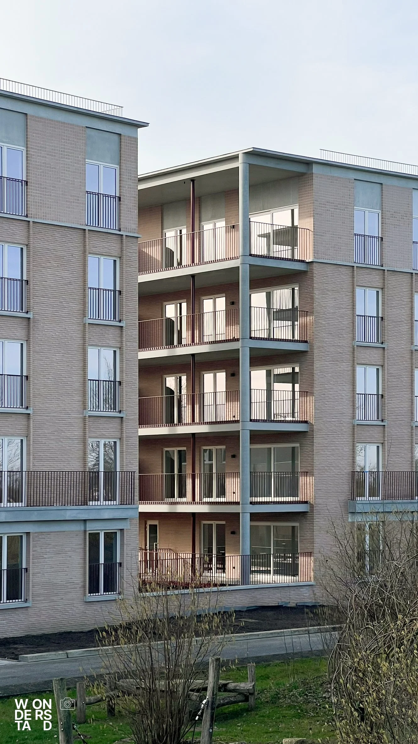 Een verhoogde sokkel tilt de appartementen boven het maaiveld. Dit geeft het gebouw niet alleen allure als ensemble, maar creëert ook een natuurlijke buffer voor privacy.