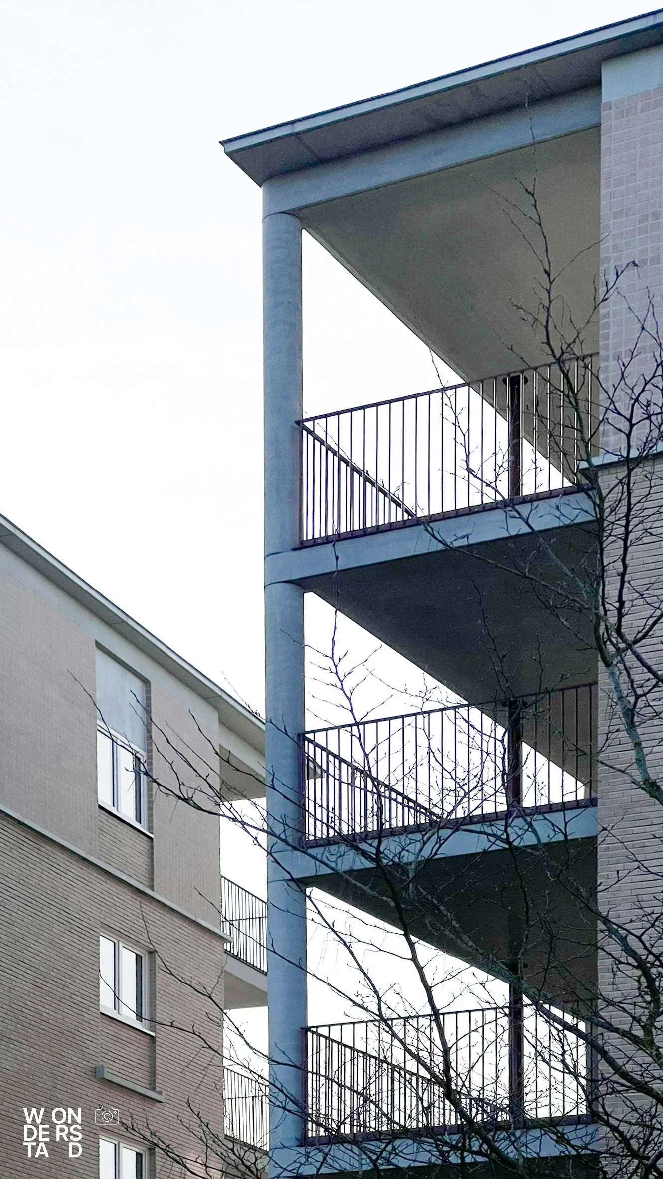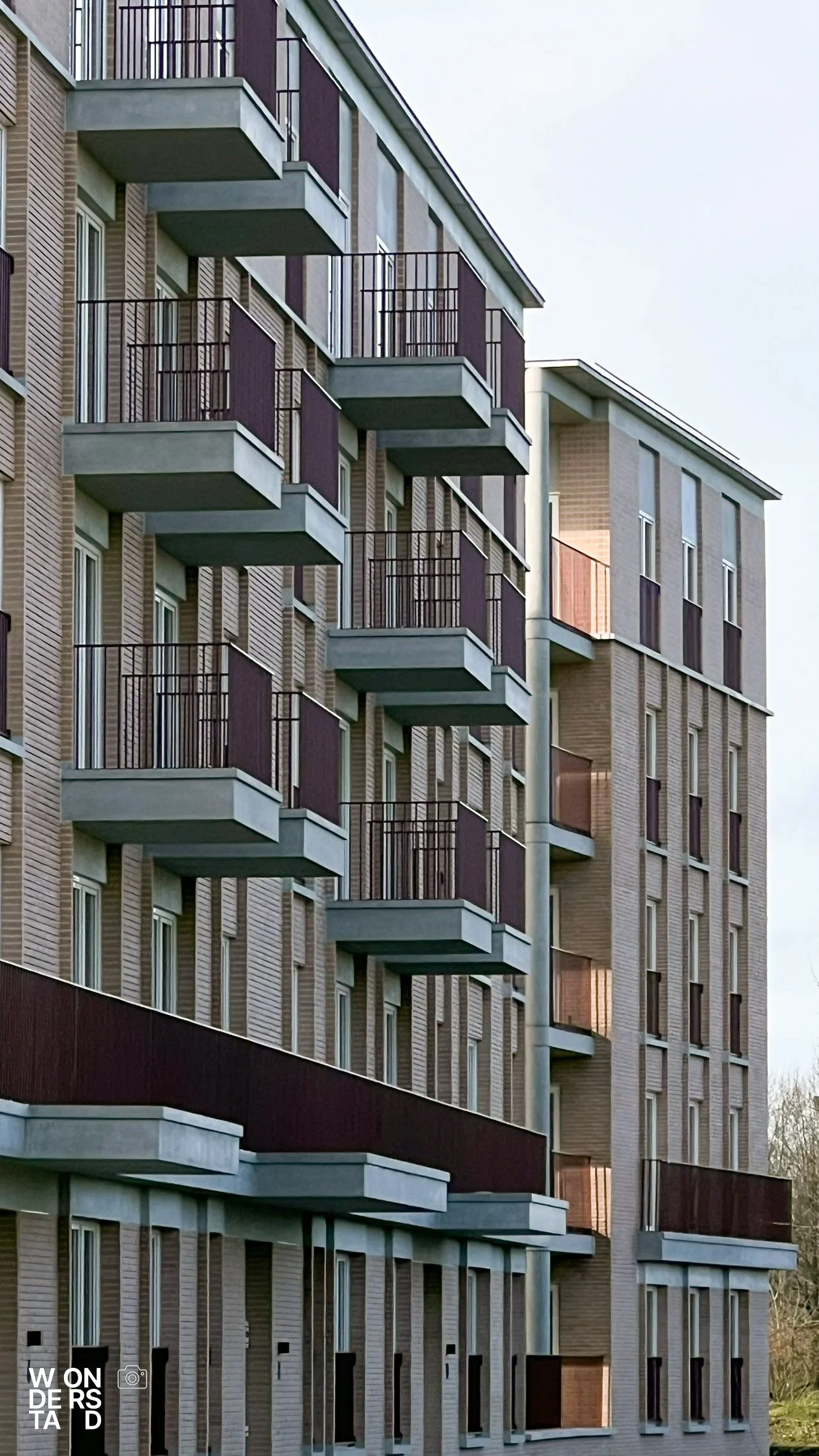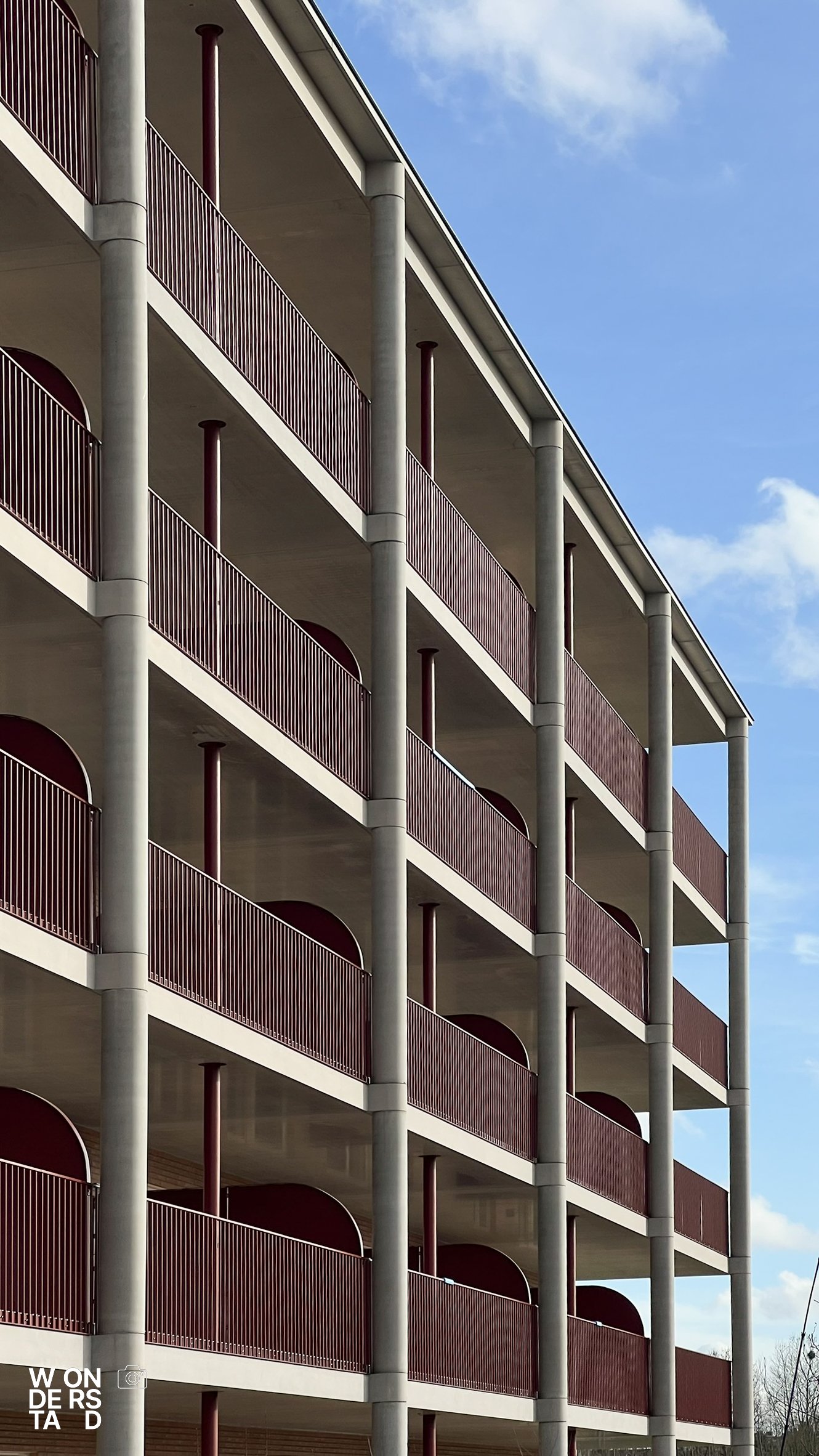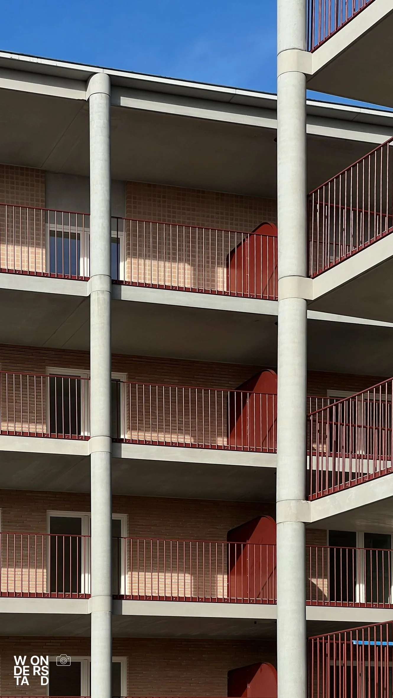 Een verhoogde sokkel tilt de appartementen boven het maaiveld. Dit geeft het gebouw niet alleen allure als ensemble, maar creëert ook een natuurlijke buffer voor privacy.