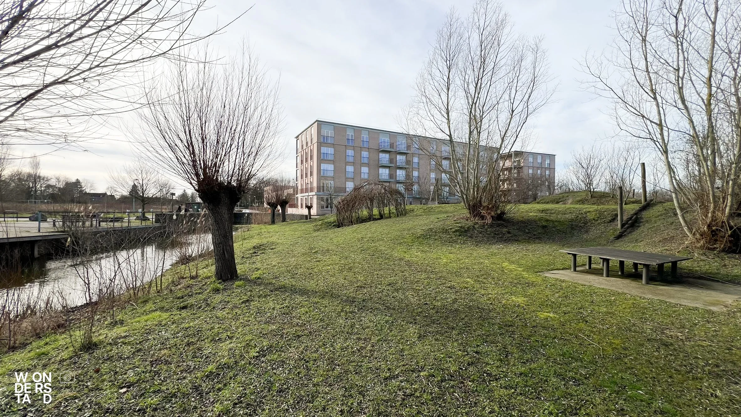 Landschappelijk vertrekt het ontwerp vanuit het genius loci: de bestaande topografie is leidend. De woonvelden worden ingeplant op de hogere ‹bolakkers›, terwijl de historische grachtenstructuur gerespecteerd en versterkt wordt. Dit respect voor de ondergrond resulteerde in een erkenning op Blauwgroenvlaanderen.be als innovatief, klimaatrobuust voorbeeldproject.