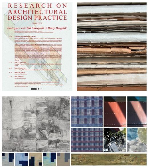 Presentatie van het doctoraat tijdens het seminarie ‘Onderzoek naar architecturale ontwerppraktijken’ met Elli Mosayebi (professor aan de ETH Zürich) en Barry Bergdoll (Columbia University, van 2007 tot 2019 curator bij de afdeling Architectuur en Design van het Museum of Modern Art in New York, bestuursvoorzitter van het Center for Architecture in New York City en sinds 2019 lid van de jury van de Pritzker Architecture Prize). 12 juni 2023.