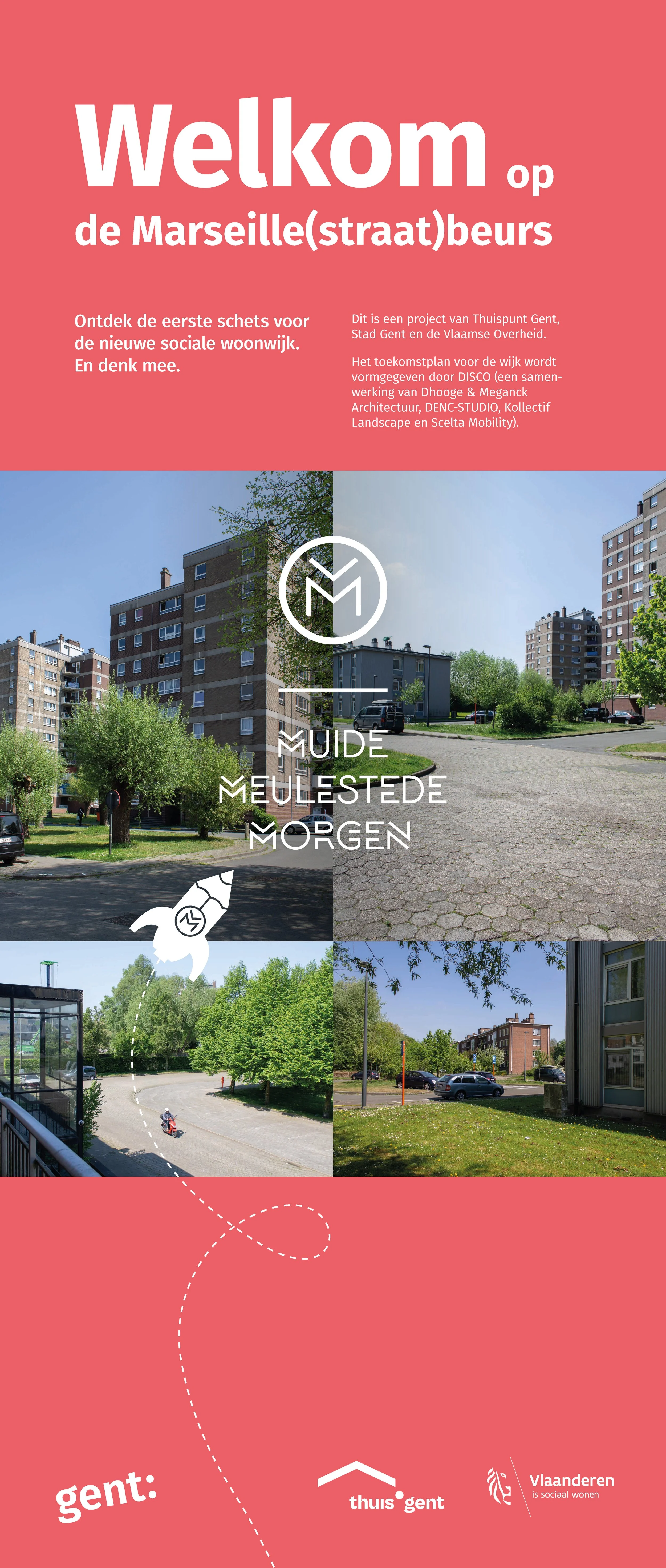 In het hart van Meulestede ligt het bouwblok rond de Marseillestraat: een plek met een sterke woontraditie, een uitgesproken sociaal karakter en waardevolle groene ruimtes. Tegelijk staan meerdere sociale woongebouwen voor ingrijpende keuzes rond renovatie en vervangbouw.