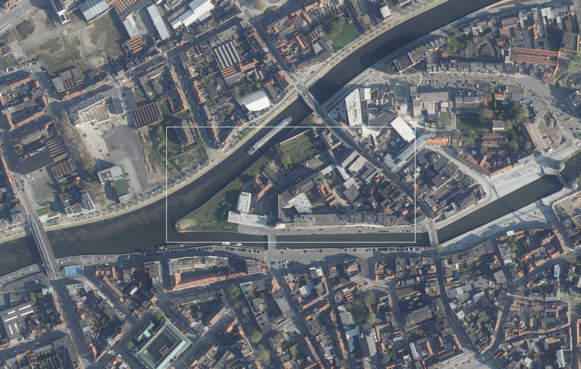 Het eiland neemt daarbij een zeer strategische positie in: als scharnier tussen twee stadsmagneten van de structurerende nood-zuidas en de oevers van de Leie is dit de uitgelezen plek waar de stedelijkheid van Kortrijk verder vorm zal krijgen.