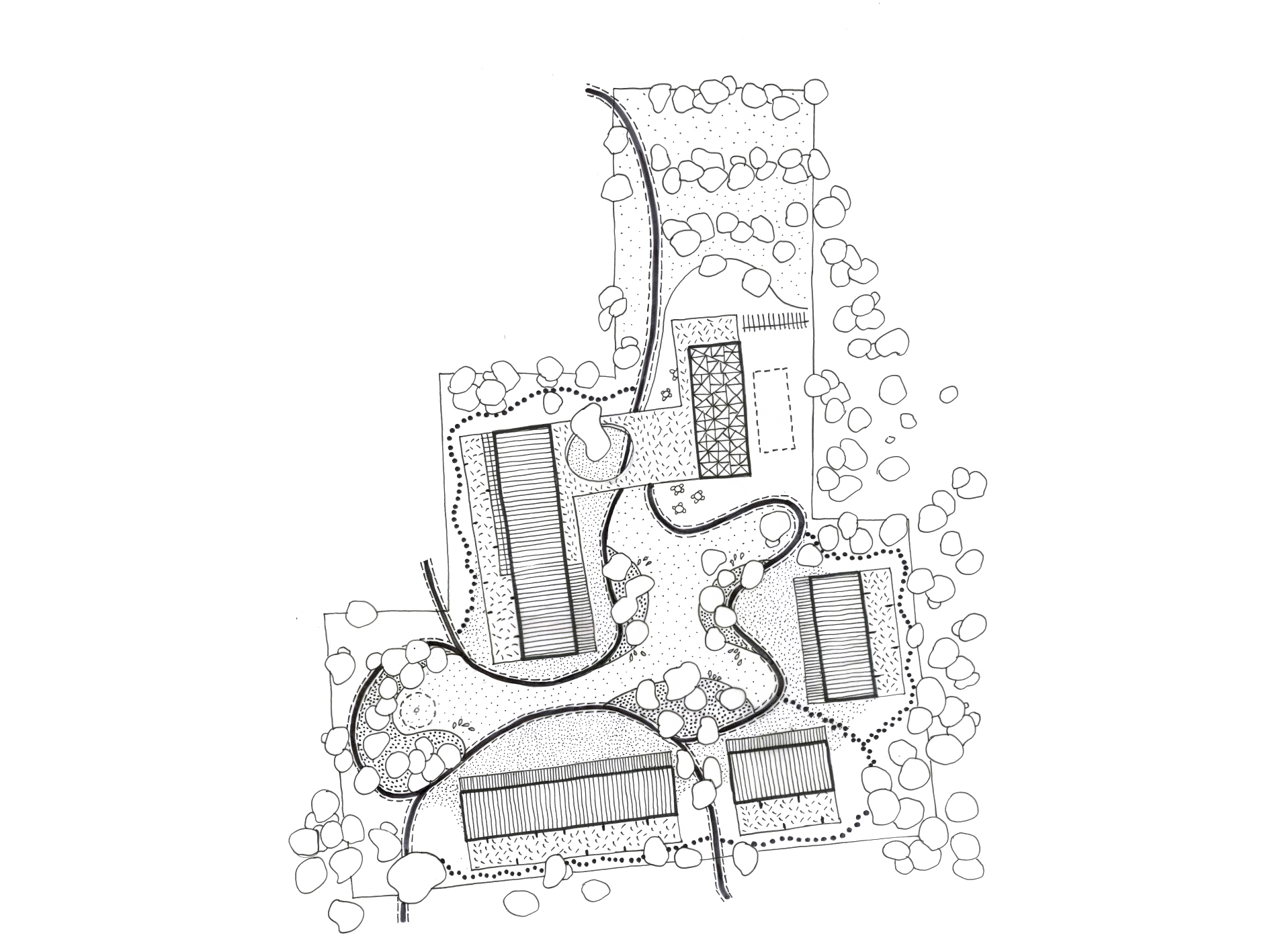 en het gemeenschapshuis. Het geheel is integraal doorwaadbaar, kindvriendelijk en natuurlijk vormgegeven, met het grootste respect voor het aanwezige landschap. De ´tussenplek´ als overgang privaat-collectief-publiek.